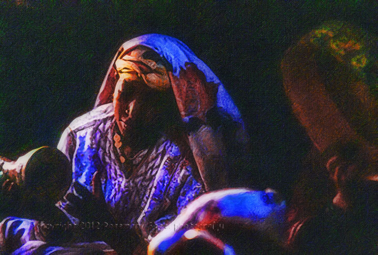 I used print film just so I could send everyone a print (cheaper than having a print from slides). I didn’t realize that I would later come to prize this shot. I like the woman’s pose, the way her face, clothing and drum are highlighted and how the decorated drum of her neighbor fills the right corner of the frame. The negative is long lost, but I did have a small copy on my computer. I used Alien Skin’s Blow Up 3 to enlarge it.
