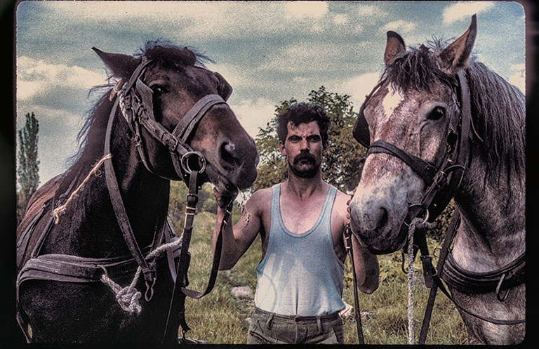 I asked the plowmen to hold the horse’s heads for me. The men took turns, following my directions…in English not Hungarian. Some of the men seemed dazed. The palinka and the heat had gone to their heads. Finally, I got this shot of the plowman I liked best for his luxuriant moustache.