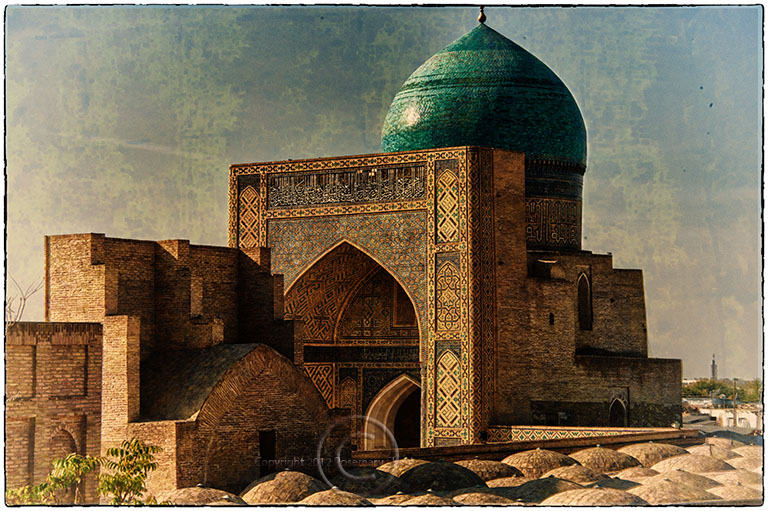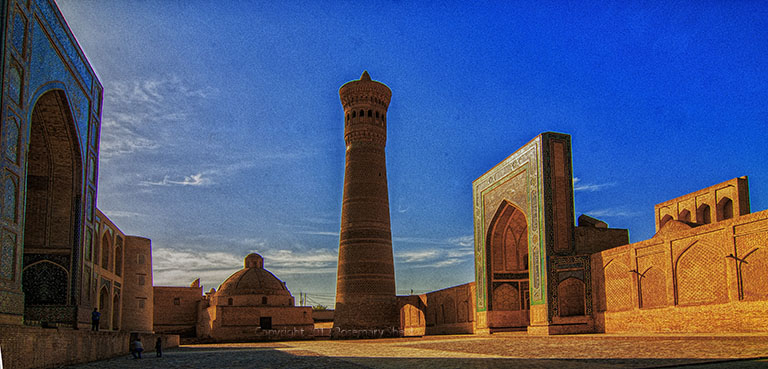 Bokhara, Uzbekistan 20012 Square with Madrassa, Minaret and Dome.