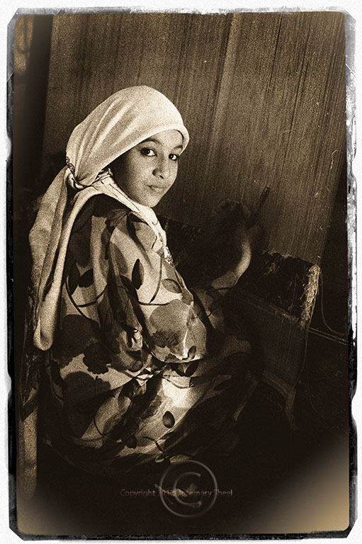 The carpet ‘factory’ hired young girls to weave. The girls we saw were in their early teens but were weaving complicated patterns on their own. They must have begun learning to weave at a very young age. This girl gives us a sideways glance as she mustn’t take time away from her knotting. She, too,is responsible for contributing to her family’s income.