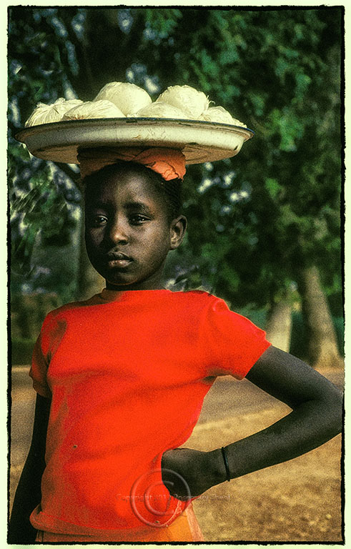A girl of Mopti strolls the sandy banks of the Niger River. She sells ground millet parcelled in plastic bags. Her customers are women who have spent the day on the river washing the families clothing. They haven’t had time to grind the millet for their dinner. She will not go home until she has sold all of her millet. Her family depends on her earnings. A girl being responsible for helping to feed her family might seem harsh to us, but it wasn’t very long ago that families in America depended on their children in the same way.