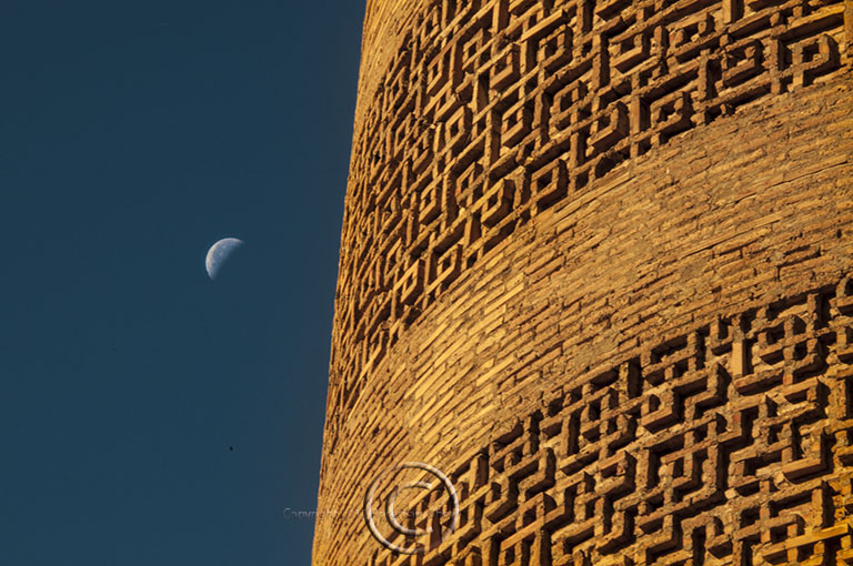 On this day, I noticed the moon. I wanted the moon in my tower shot. But if I shot the entire tower, the moon became invisible. Then, eureka! Show the roundness of the tower, the intricate brickwork and the moon. Would that work? I think it does.